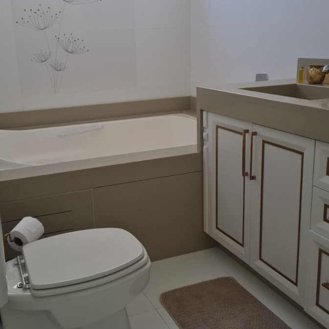 Na Marmoraria Benvenutti, realizamos o projeto e a instalação da sua pia com acabamento de alto padrão, unindo funcionalidade e estética. Além disso, também revestimos banheiras em mármore e granito, criando um conjunto harmonioso e sofisticado para o seu banheiro.